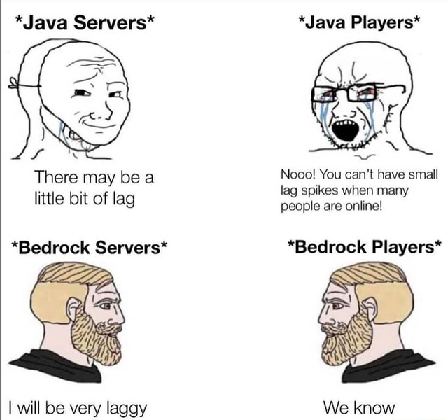 When You Join Your Own Java Server Using Bedrock Edition Minecraft from i.redd.it Java edition, dedicated bedrock servers enable players on the bedrock versions of minecraft to set . You can use the same port that you use for java edition to connect to your server with bedrock after installing the geyser plugin. The java client for mac won't be able to connect to a bedrock server. Trust me you won't regret it! Head over to the server list in minecraft and click on any of the servers listed that have the message "join to open server list" below the name . So my friends who play fom java (while im bedrock) and i decided to make a server. Similar to what has been available for players of minecraft: Play across devices, connect with more friends, and get more.
